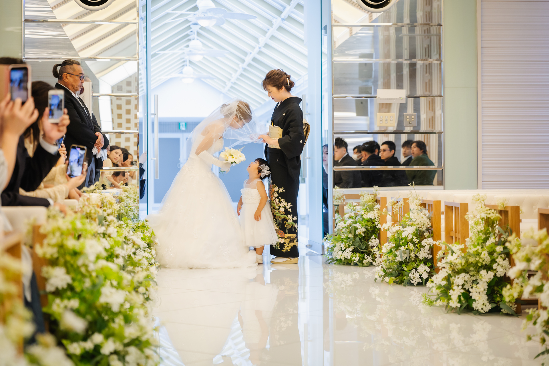 バージンロードを歩く新郎新婦や、お母さまなど大切な存在の方によるベールダウン、お子様によるリングボーイやリングガール、といった家族の絆を感じられる演出によって、両親や参列者との特別な瞬間を共有することができます。