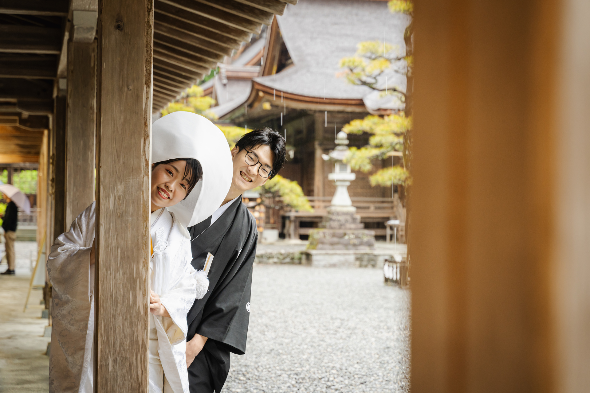 春の小国神社での和婚は、まるで絵巻物のような美しい情景がお二人を祝福します。